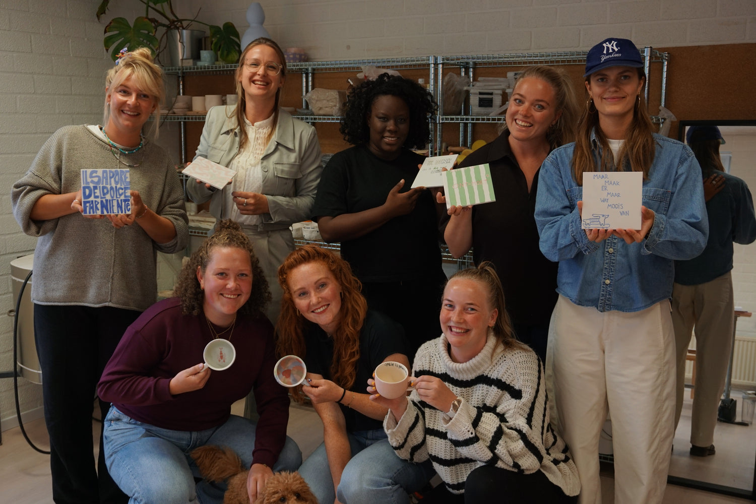 We sluiten af met een teamfoto en sturen de gebakken tegels of mokken na afloop per post op. Zo krijgt iedereen een blijvende herinnering voor op je werkplek thuis of op kantoor – met een persoonlijke boodschap.